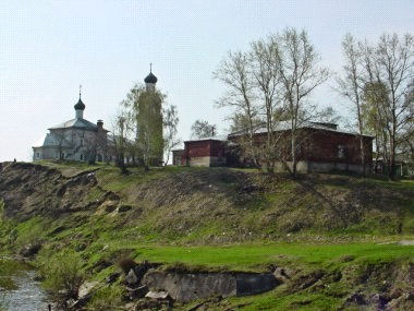 «Однажды он вышел к реке с песчаным перекатом, перешел ее вброд, полюбовался кишащей в ней рыбой, и, поднявшись на поросшую могучими деревьями кручу, увидел, почти на самой вершине ее, родник исключительно чистой воды. Напился, огляделся. Покоренный красотой и величием местности, Сергий решил здесь поселиться».