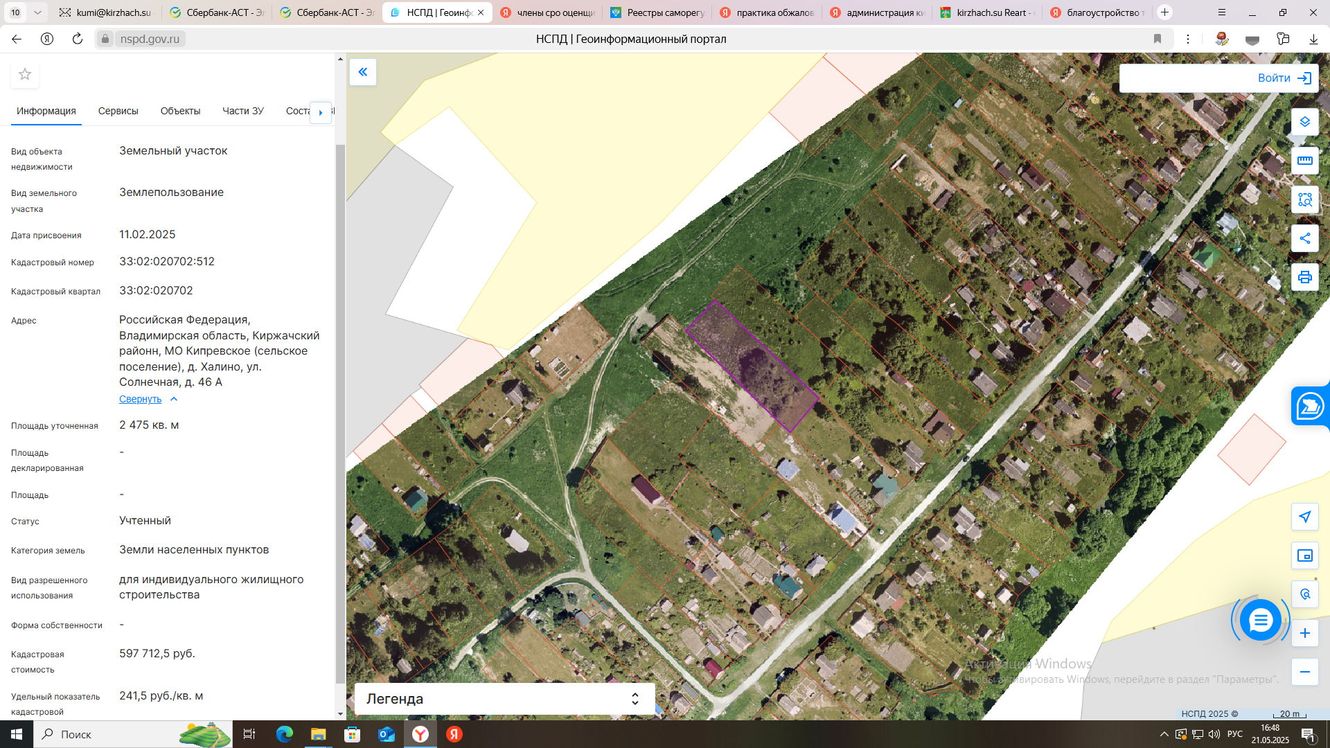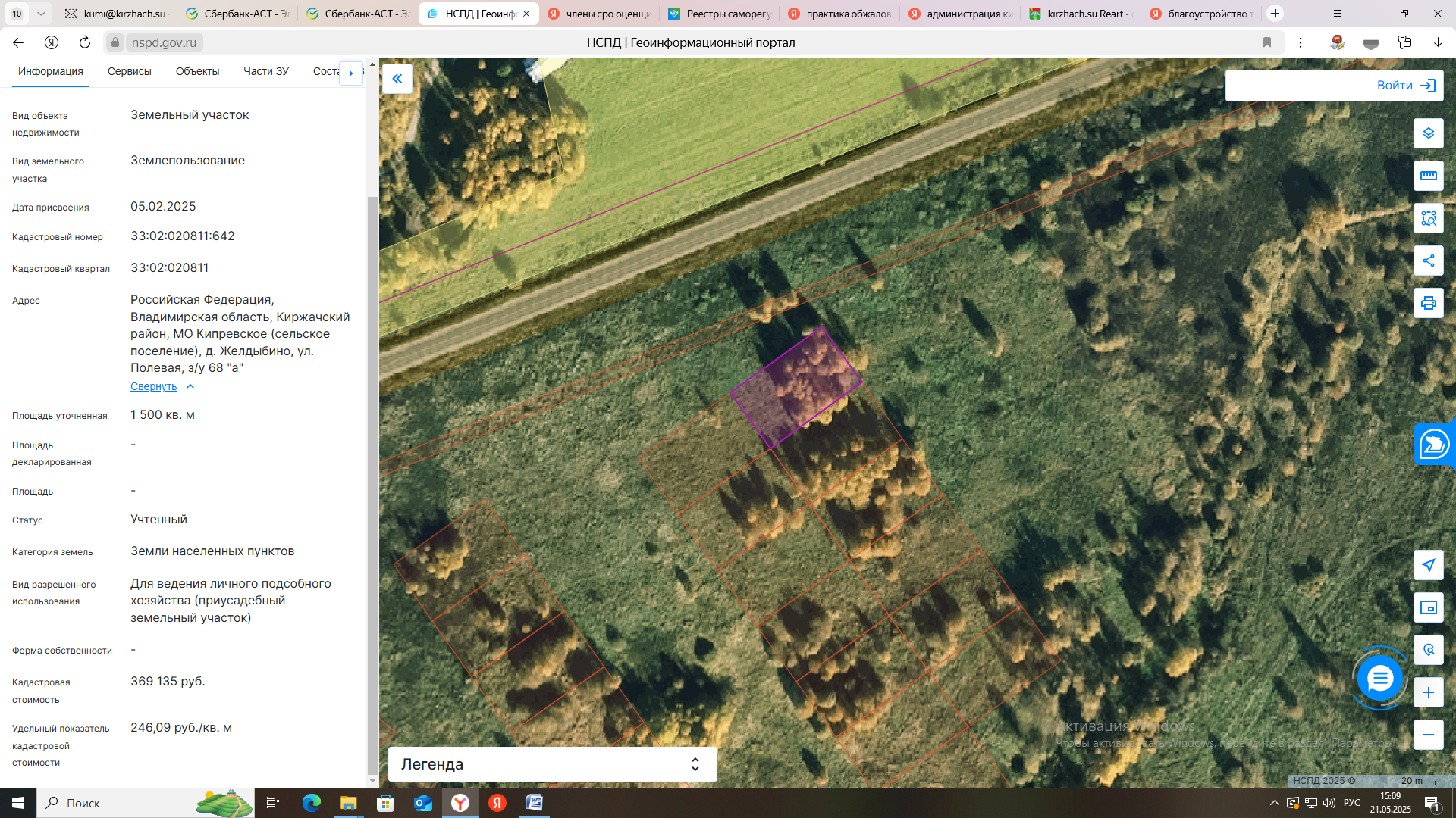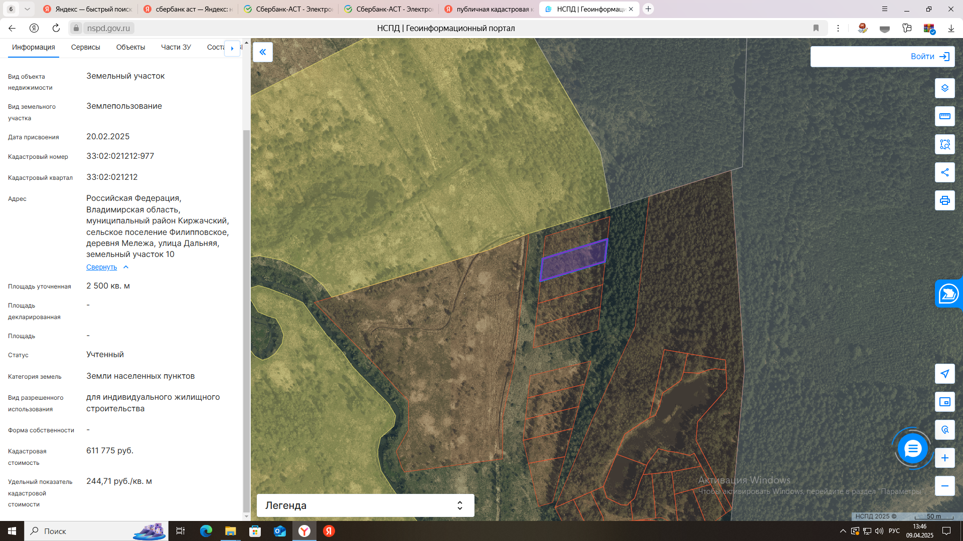 электронный аукцион на право заключения договора купли-продажи земельного участка с кадастровым номером 33:02:021212:977, площадью 2500 кв. м, из категории земель населенных пунктов, с разрешенным использованием: для индивидуального жилищного строитель |