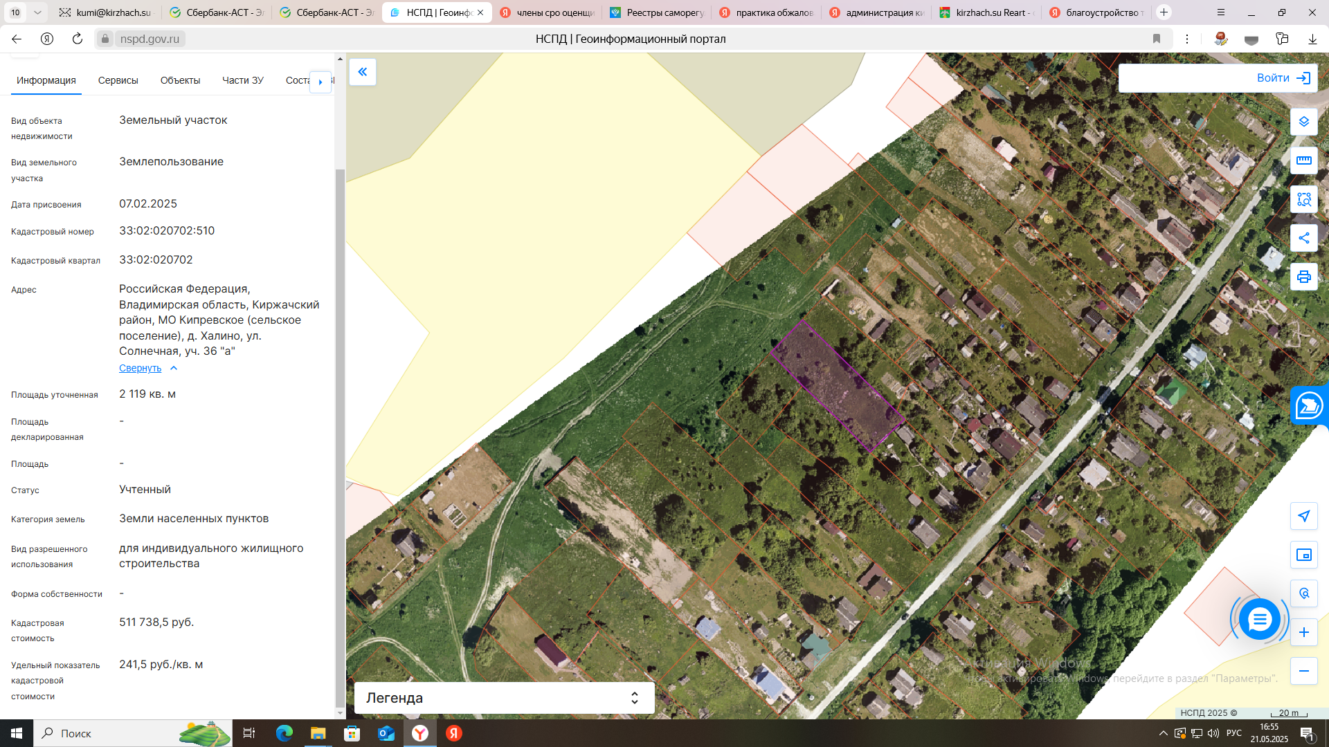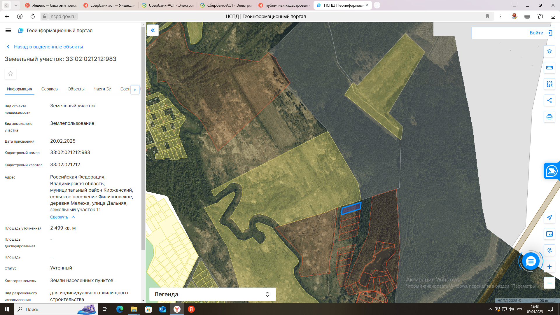 электронный аукцион на право заключения договора купли-продажи з/ у с кн 33:02:021212:983, площадью 2499 кв. м, из категории земель населенных пунктов, с разрешенным использованием: для ИЖС |