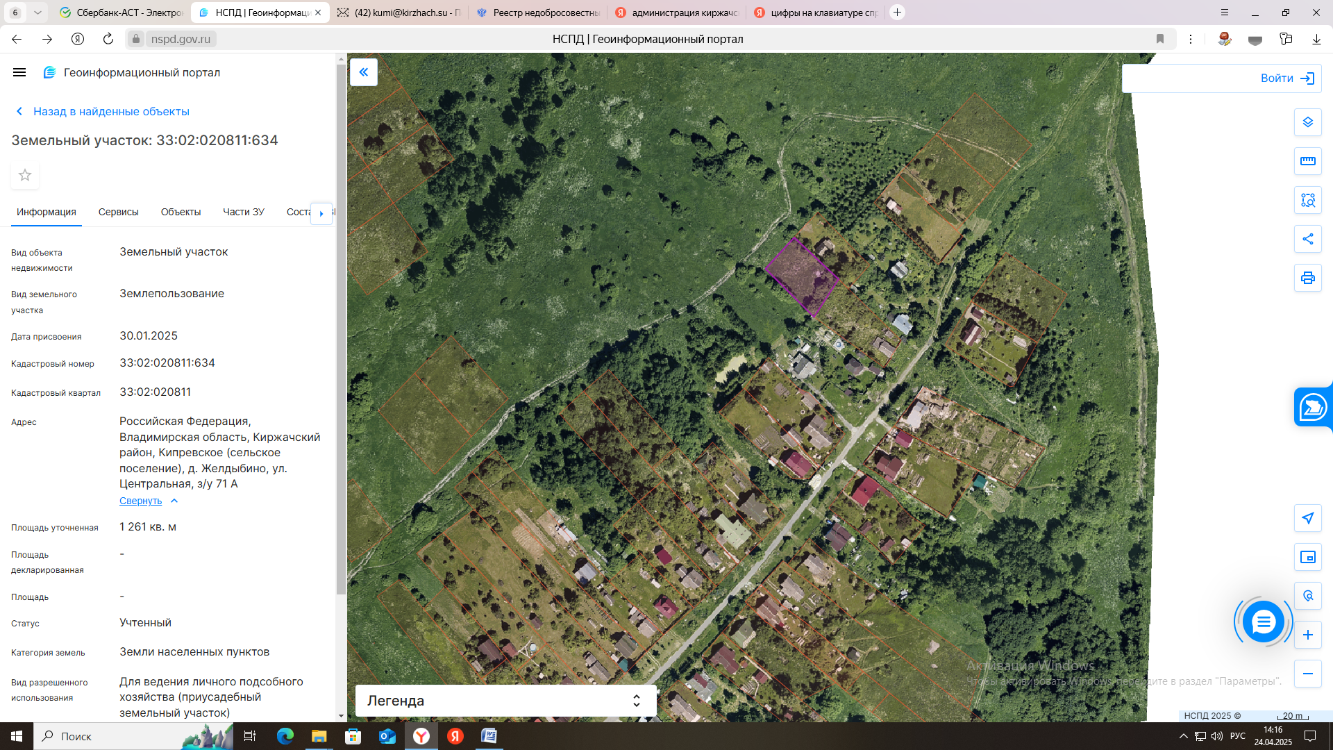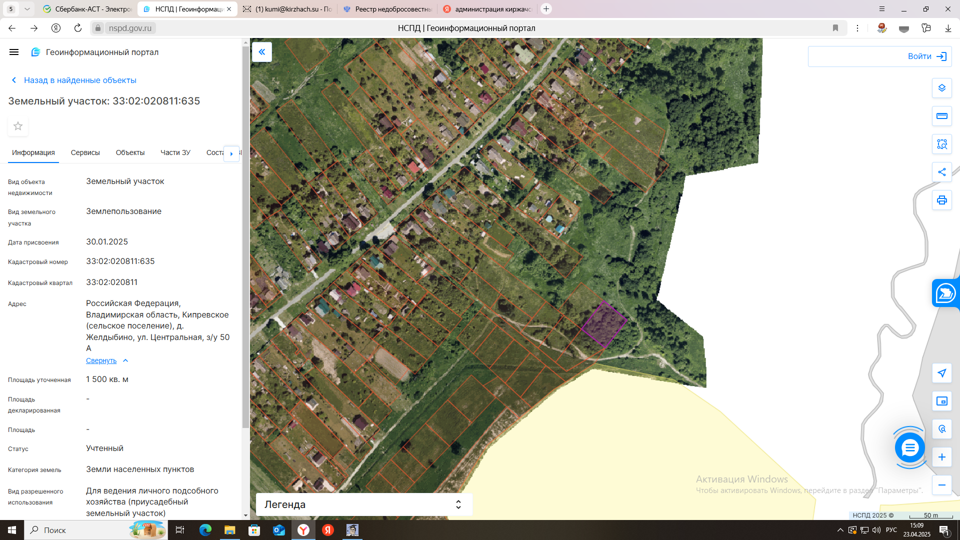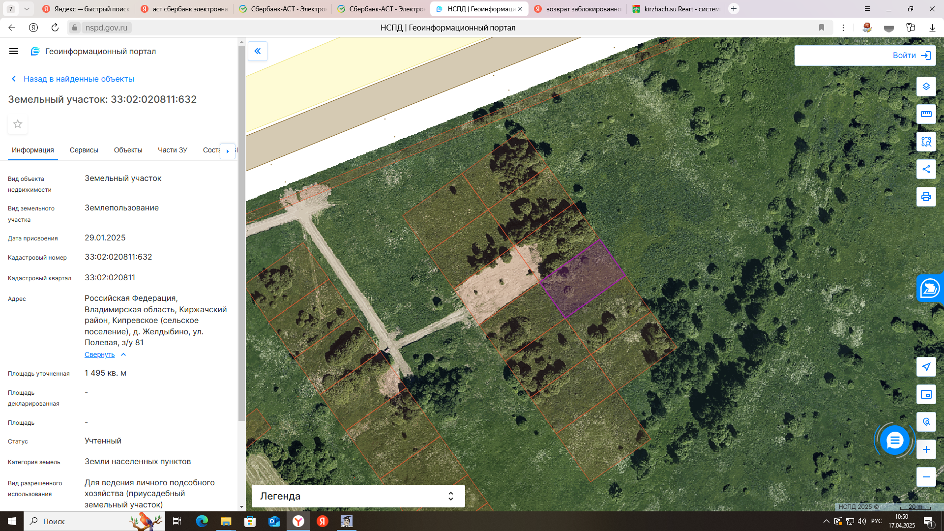 электронный аукцион на право заключения договора аренды земельного участка на срок 20 лет с кадастровым номером 33:02:020811:632, площадью 1495 кв. м, из категории земель населенных пунктов, с разрешенным использованием: для ведения личного подсобного хо |