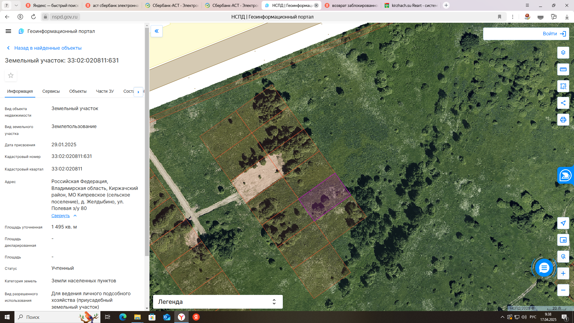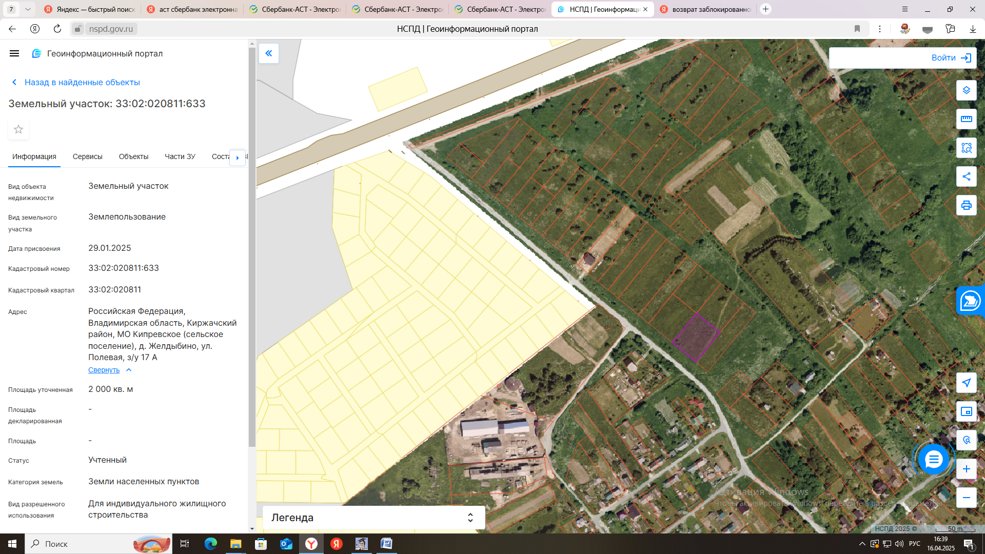 электронный аукцион на право заключения договора аренды земельного участка на срок 20 лет с кадастровым номером 33:02:020811:633, площадью 2000 кв. м, из категории земель населенных пунктов, с разрешенным использованием: для индивидуального жилищного стр |