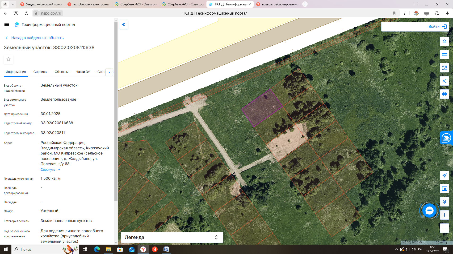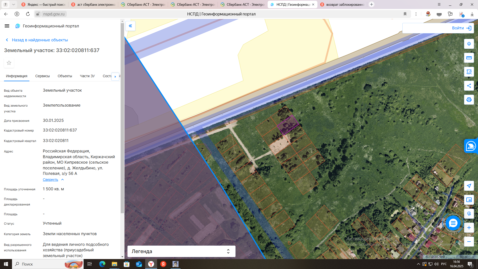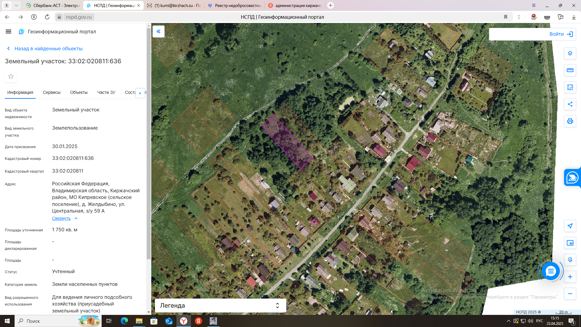 электронный аукцион на право заключения договора аренды земельного участка на срок 20 лет с кадастровым номером 33:02:020811:635 площадью 1500 кв. м, из категории земель населенных пунктов, с разрешенным использованием: для ведения личного подсобного хоз |