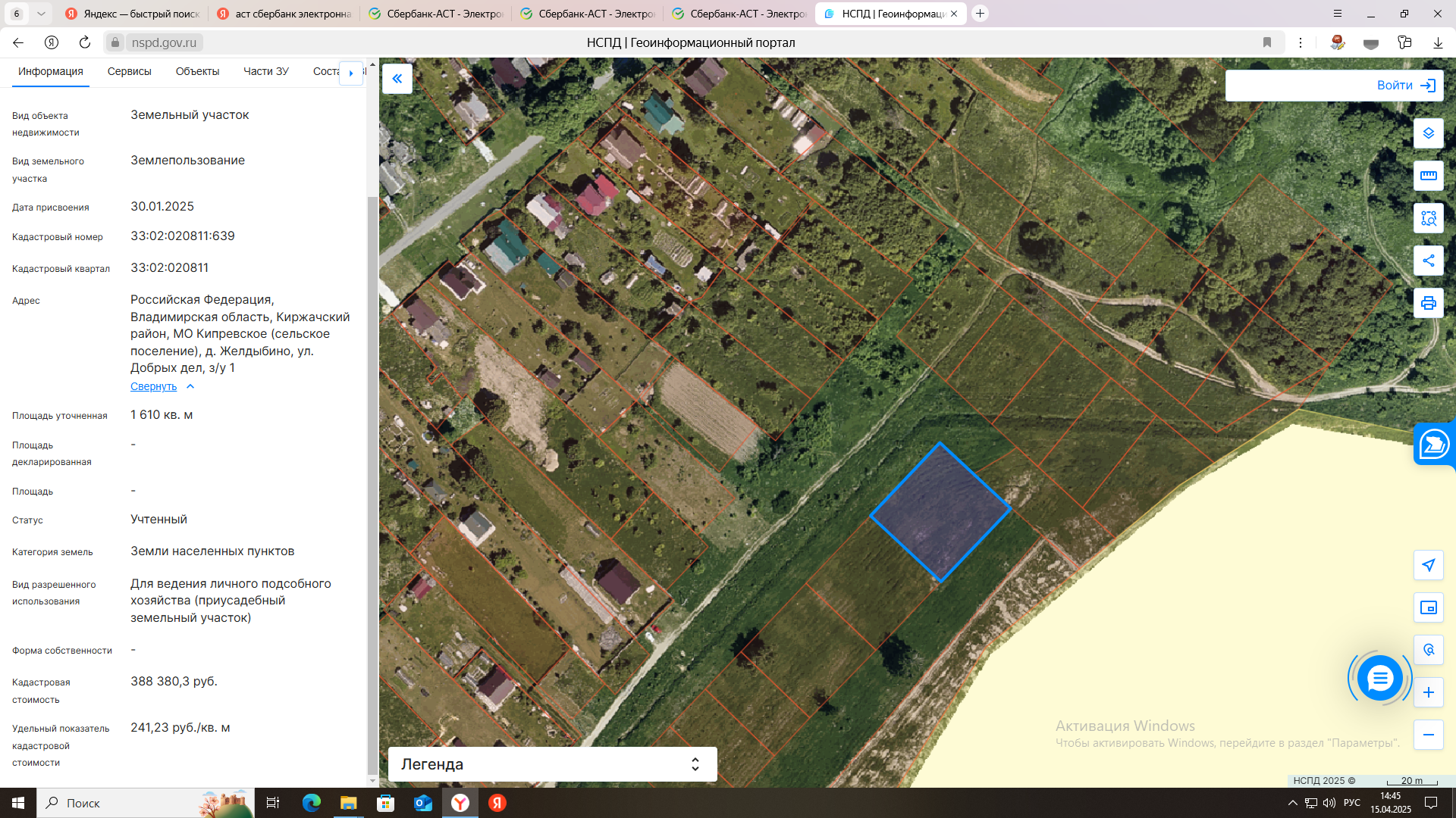 электронный аукцион на право заключения договора аренды земельного участка на срок 20 лет с кадастровым номером 33:02:020811:639, площадью 1610 кв. м, с разрешенным использованием: для ведения личного подсобного хо |