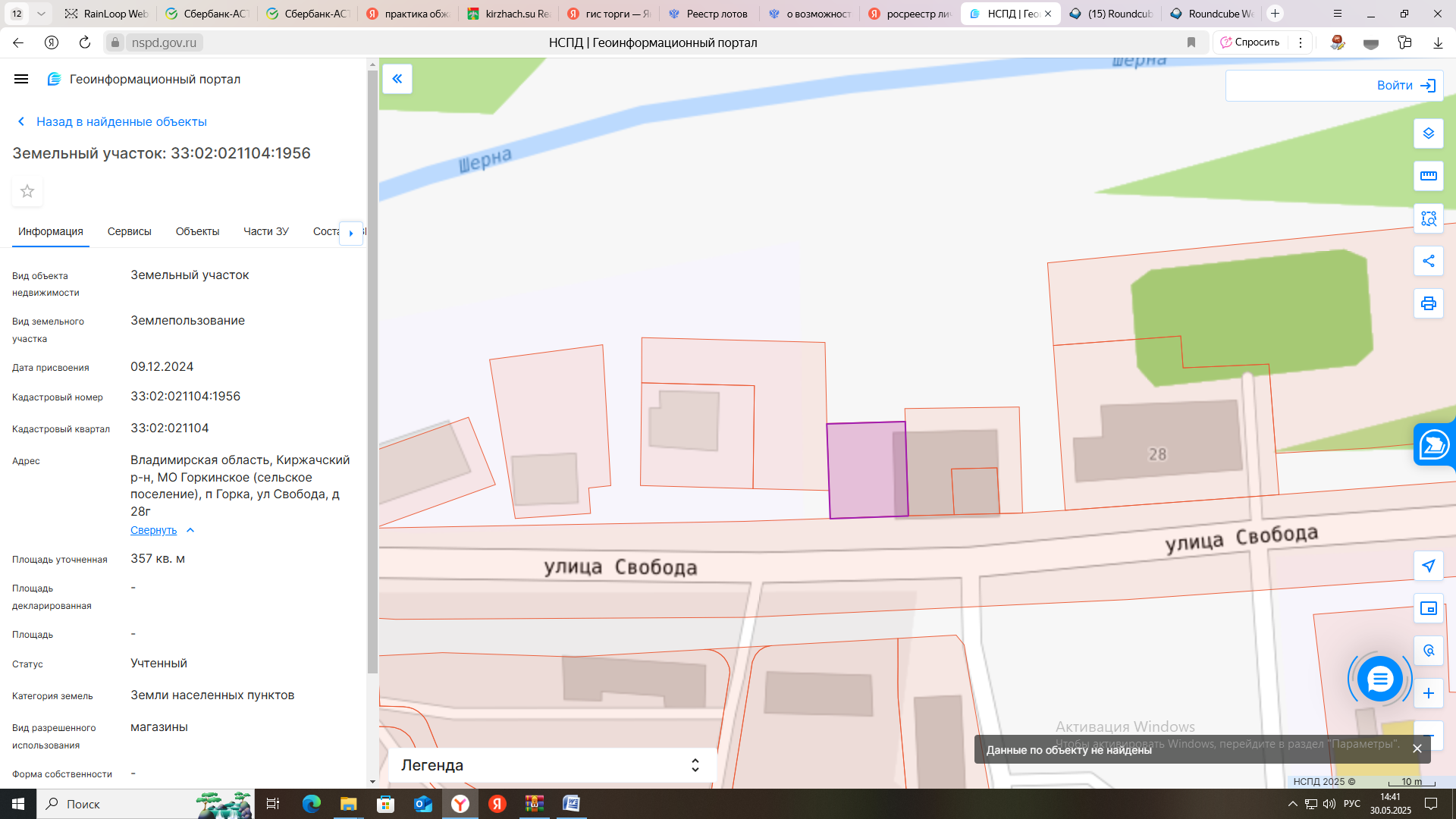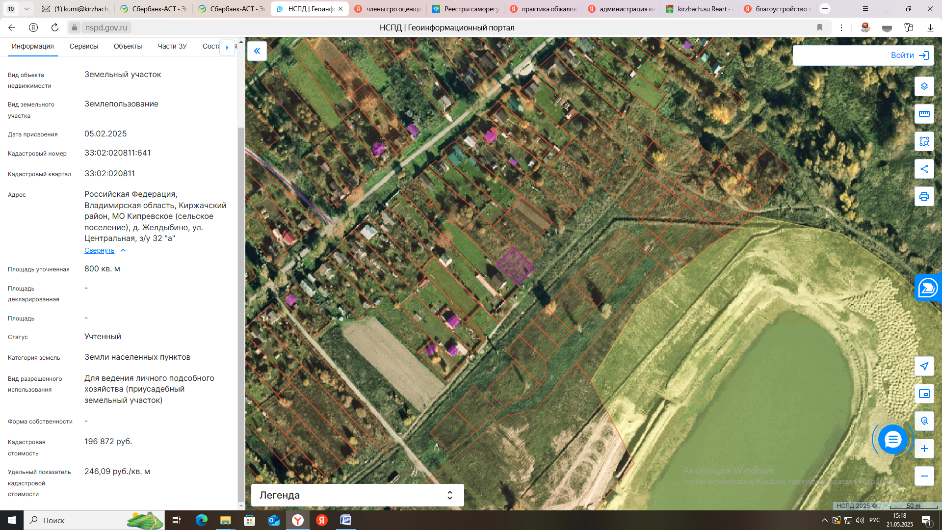 электронный аукцион на право заключения договора аренды земельного участка на срок 20 лет с кадастровым номером 33:02:020811:641 площадью 800 кв. м |