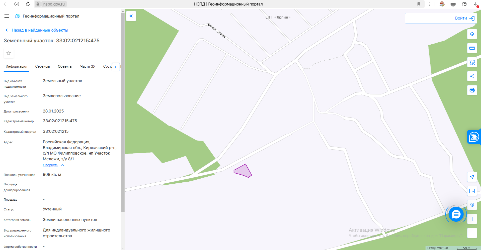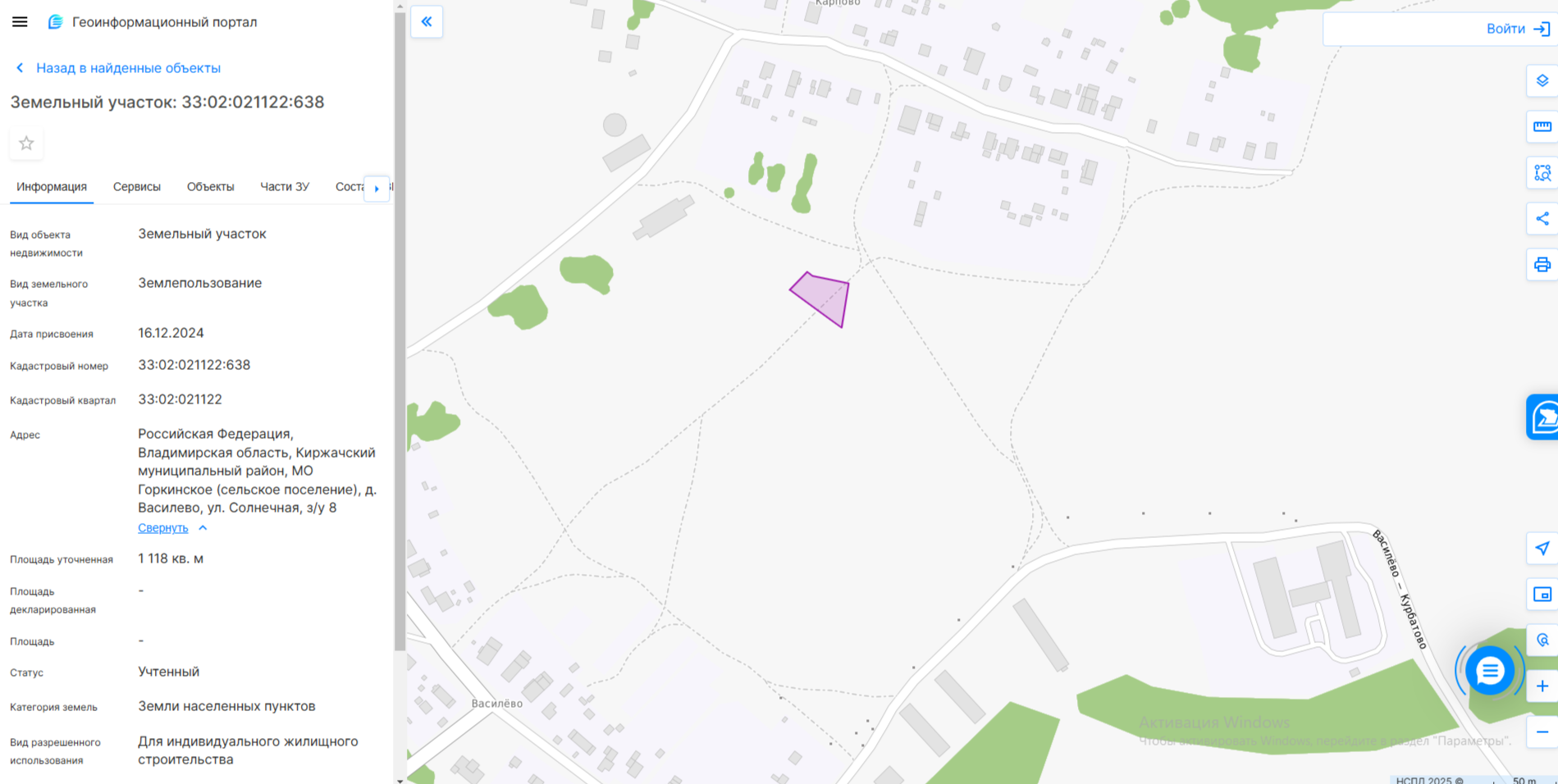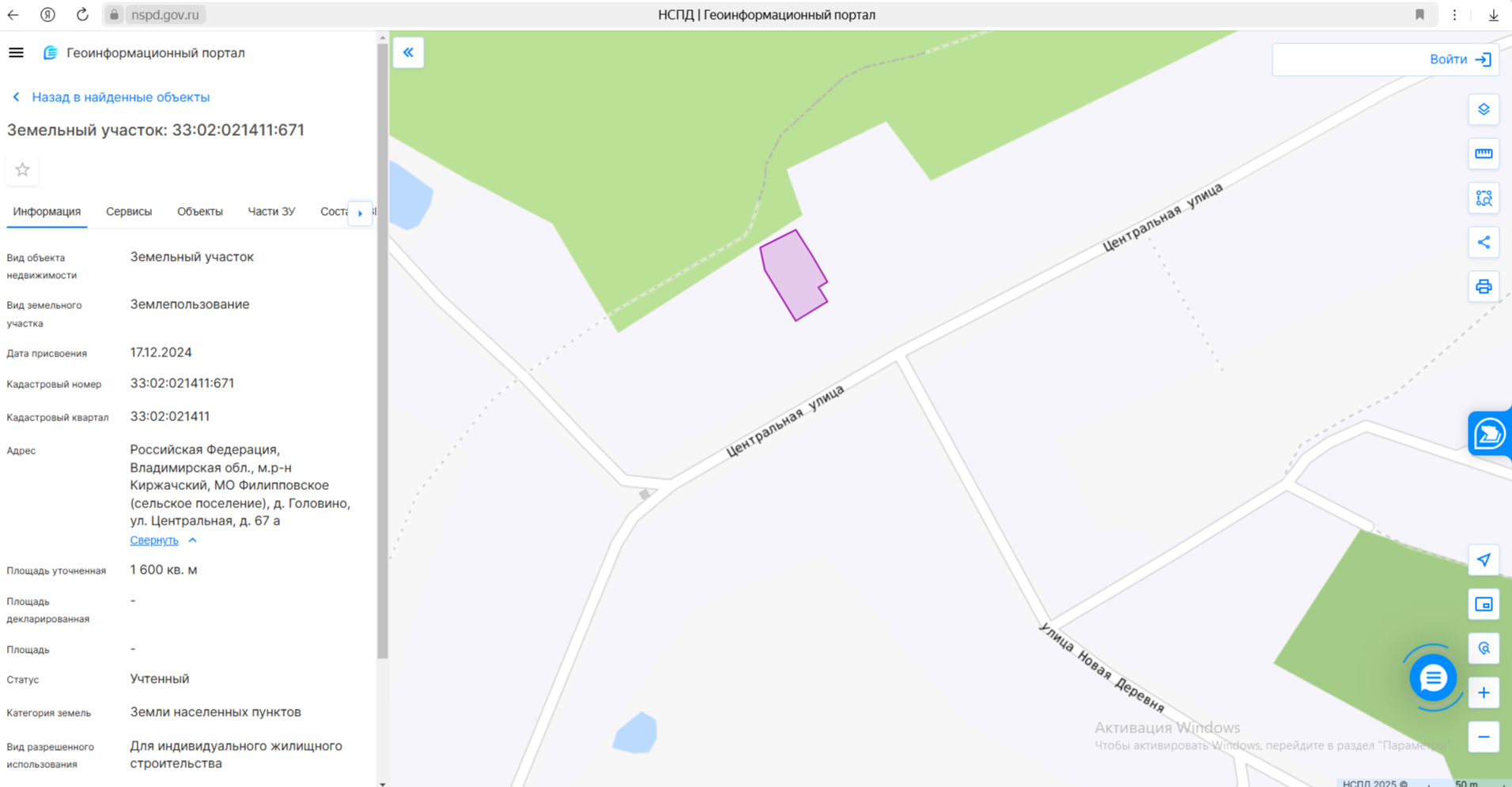 электронный аукцион на право заключения договора аренды земельного участка на срок 20 лет с кадастровым номером 33:02:020615:974, площадью 1656 кв. м, из категории земель населенных пунктов, с разрешенным использованием: для индивидуального жилищного стр |
