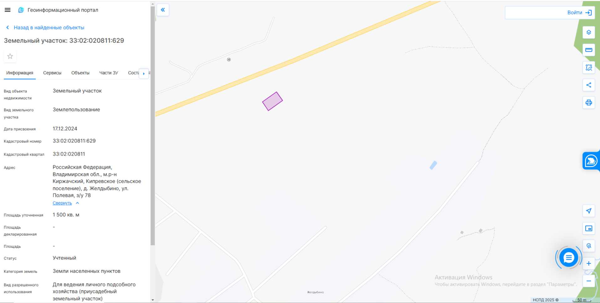 электронный аукцион на право заключения договора аренды земельного участка на срок 20 лет с кадастровым номером 33:02:020811:629, площадью 1500 кв. м, из категории земель населенных пунктов, с разрешенным использованием: для ведения личного подсобного хо |