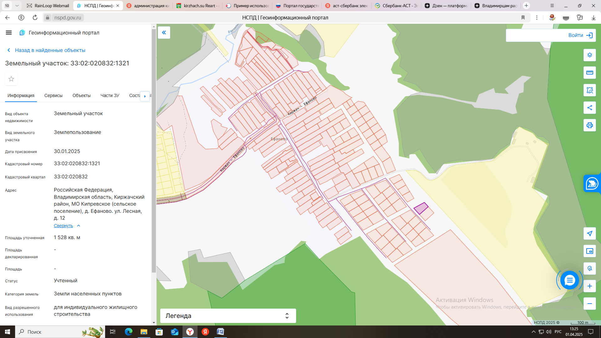 электронный аукцион на право заключения договора аренды земельного участка на срок 20 лет с кадастровым номером 33:02:020832:1321 площадью 1528 кв. м, из категории земель населенных пунктов, с разрешенным использованием: для индивидуального жилищного стр |