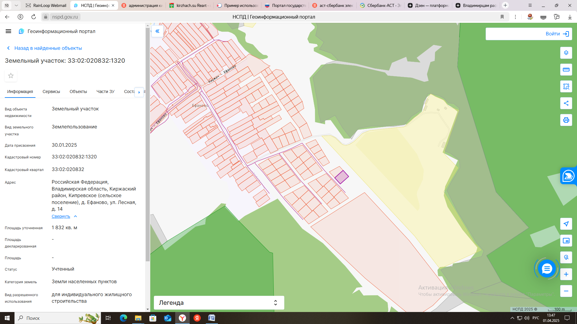 электронный аукцион на право заключения договора аренды земельного участка на срок 20 лет с кадастровым номером 33:02:020832:1320 площадью 1832 кв. м, из категории земель населенных пунктов, с разрешенным использованием: для индивидуального жилищного стр |