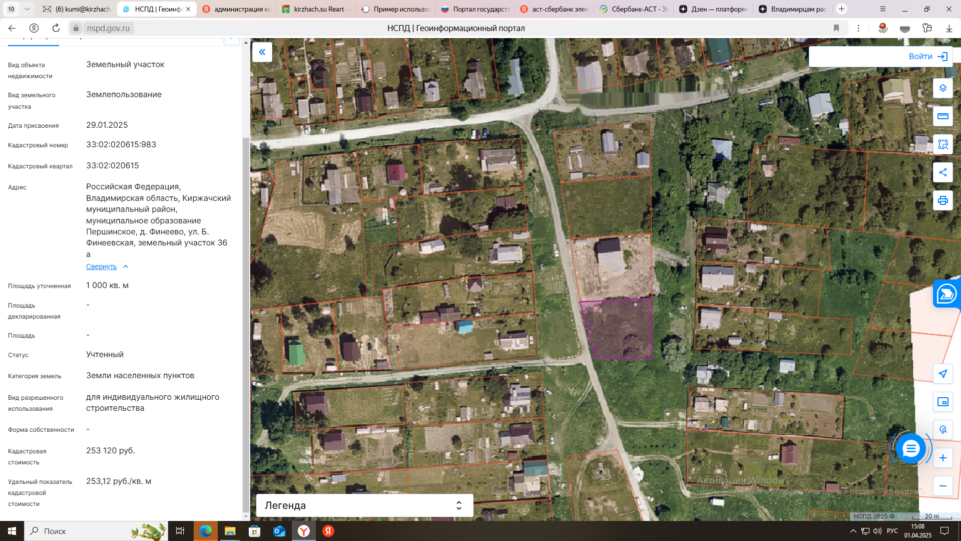 электронный аукцион на право заключения договора купли-продажи земельного участка с кадастровым номером 33:02:021304:436, площадью 1435 кв. м, из категории земель населенных пунктов, с разрешенным использованием: для индивидуального жилищного строитель |