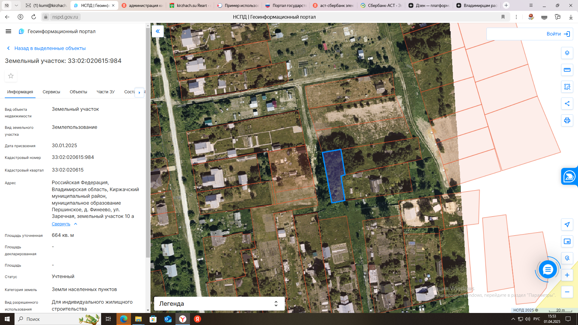 электронный аукцион на право заключения договора аренды земельного участка на срок 20 лет с кадастровым номером 33:02:020615:984, площадью 664 кв. м, из категории земель населенных пунктов, с разрешенным использованием: для индивидуального жилищного стро |